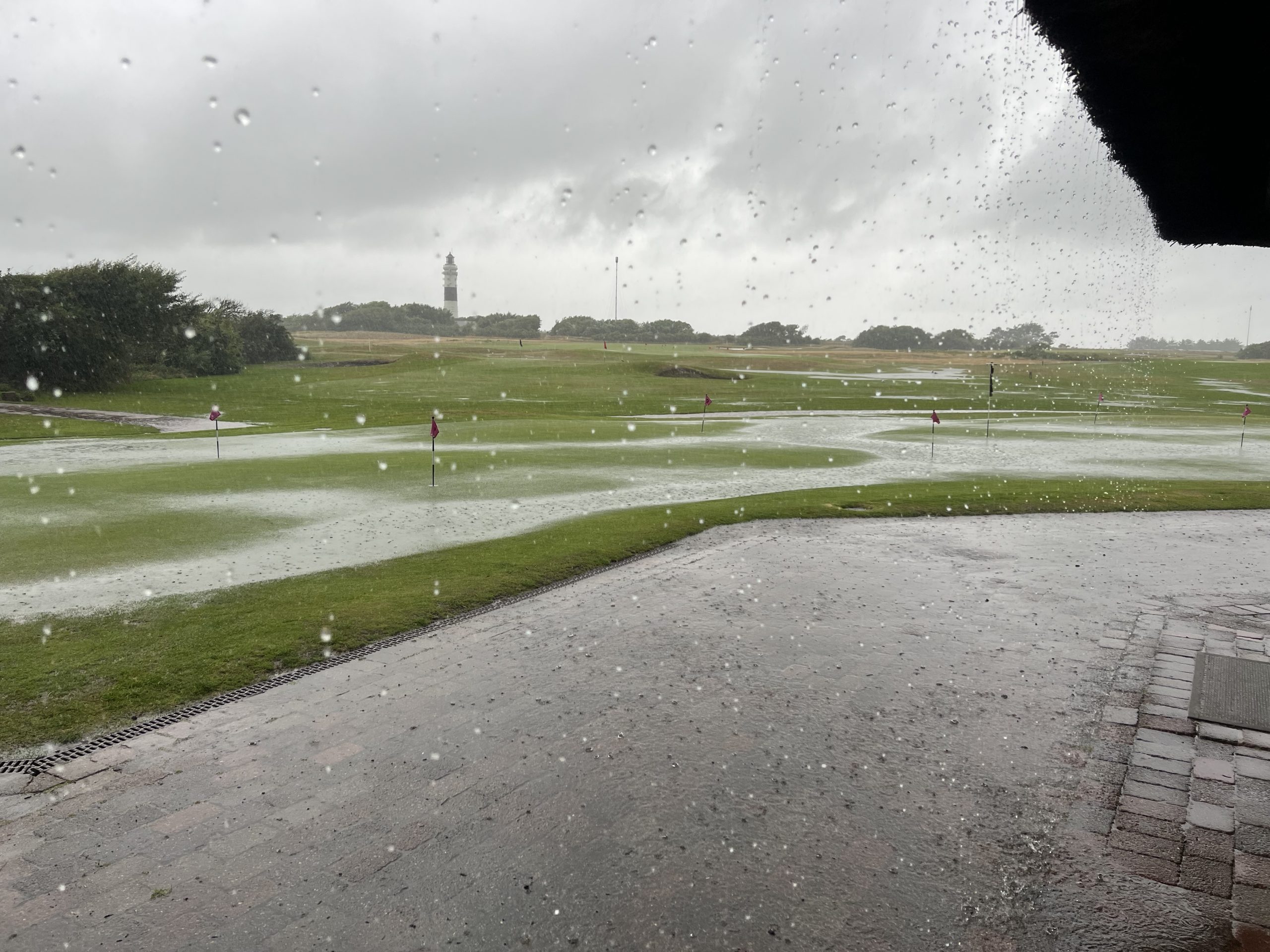 Mehrere Bunker sind übergelaufen, und auf vielen Fairways steht großflächig Wasser – ein regulärer Spielbetrieb ist unter diesen Bedingungen leider nicht möglich.
